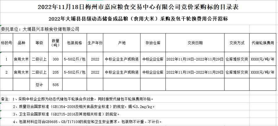 2022年大埔縣縣級動態(tài)儲備成品糧采購及包干輪換費(fèi)用公開招標(biāo)公告