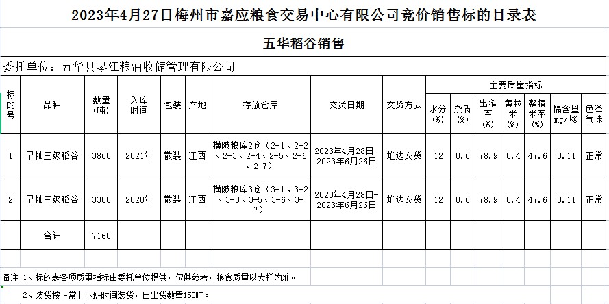 受客戶委托,梅州市嘉應糧食交易中心有限公司定于2023年4月27日(星期四)舉辦糧食競價交易會。五華縣琴江糧油收儲管理有限公司擬銷售2020、2021年早秈稻7160噸。