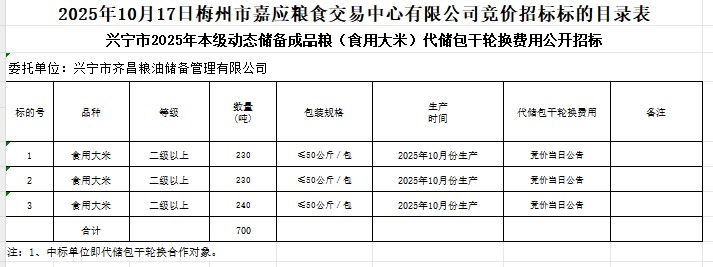 興寧市2025年本級動態(tài)儲備成品糧(食用大米)采購及代儲包干輪換費用公開招標(biāo)公告
