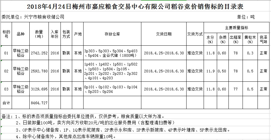 交易時(shí)間和地點(diǎn):2018年4月24日(星期二)上午10時(shí)。廣東省梅州市彬芳大道南161號(hào)梅州市糧食交易中心3樓。